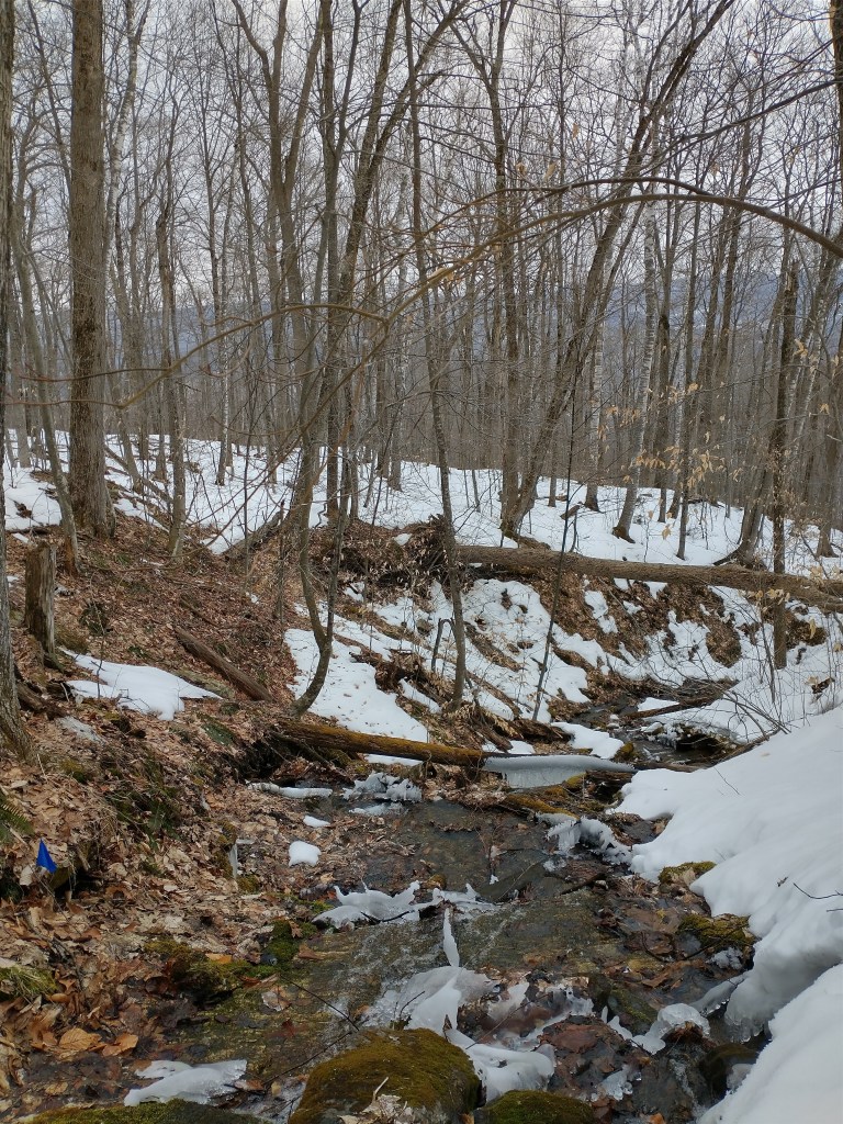 But there’s this, too: Walking in slow-piled snow, alone, for what felt like formless hours. Jacketed against 40-degree weather, taking a long slow trail upwards at my own pace. It’s just me, here, in the sweeping wind between naked trees, stripped to the bark for winter. I can hear the streams, thawed for spring, flush with snowmelt, as easy as the beat of my own heart. The gasp of my own breath is just another half-wild sound in the wild around me.